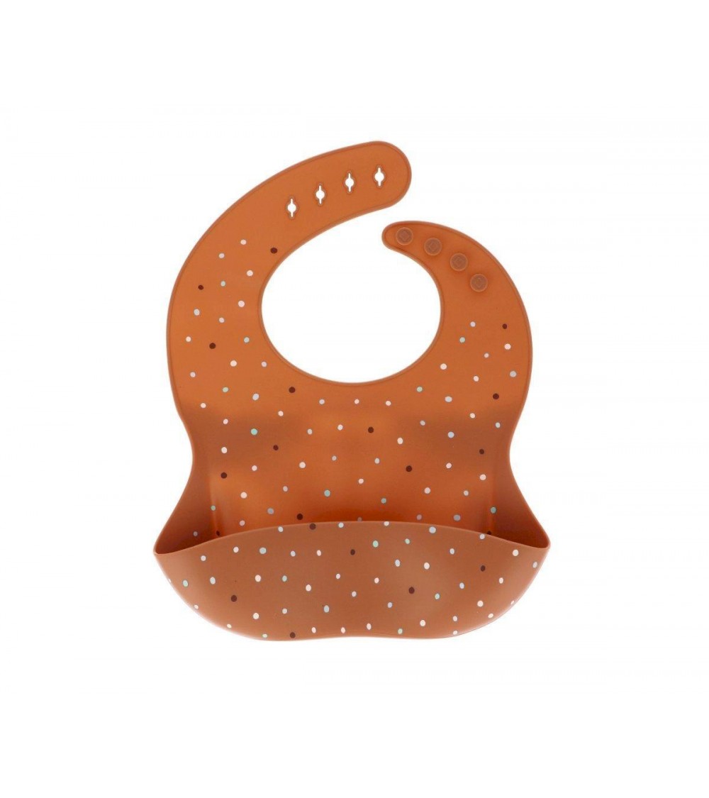 Fácil de limpar, o nosso babete de silicone resiste a manchas e não absorve água