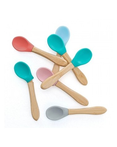 Colheres sustentáveis e amigas do ambiente para as refeições dos mais novos. Com pegas em Bamboo e com ponta muito suave em silicone.