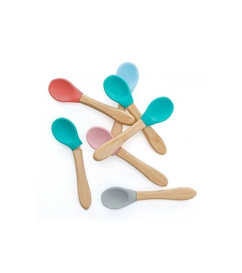 Colheres sustentáveis e amigas do ambiente para as refeições dos mais novos. Com pegas em Bamboo e com ponta muito suave em silicone.