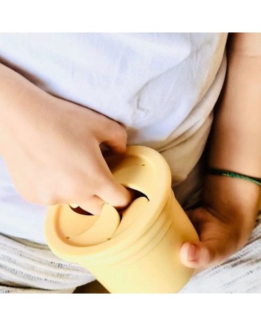 2 em 1: copo com palhinha e taça com tampa, o Sip + Snack, em Silicone, é ideal para incentivar a independência dos pequenos à hora do lanche.