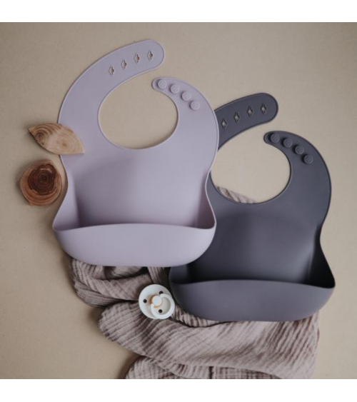 Fácil de limpar, o nosso babete de silicone resiste a manchas e não absorve água