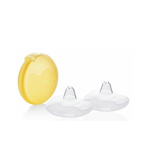 Os mamilos de silicone Contact™ da Medela tornam a amamentação possível quando a pega da mama é difícil ou dolorosa, pois protegem os mamilos doridos e ajudam o seu bebé a pegar na mama mais facilmente.