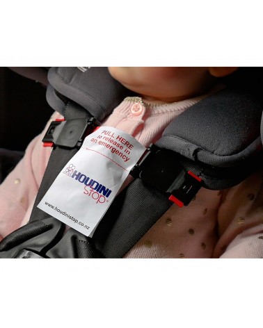 ATENÇÃO: O uso do Houdini Stop não interfere na segurança dos cintos da cadeirinha. O seu funcionamento é igualmente seguro, apenas evita que as crianças se esquivem através dos arneses, pondo em perigo a sua segurança.