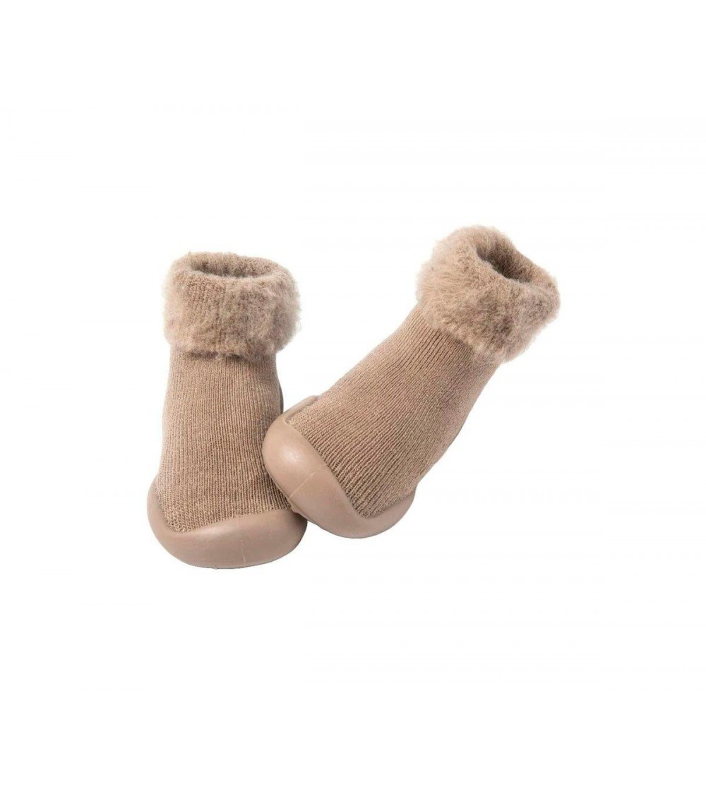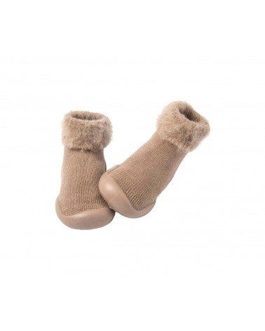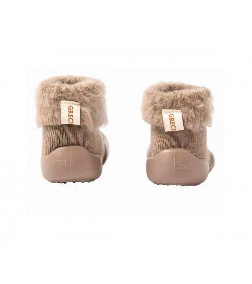 Estes slipers infantis da Grech&Co são perfeitos para manter os pés dos mais pequenos confortáveis e quentinhos. O material de fio cardado de poliéster reciclado é macio e agradável à pele e a sola de borracha TPR os torna mais duráveis e perfeitos para uso interno e externo devido à sua aderência antiderrapante.